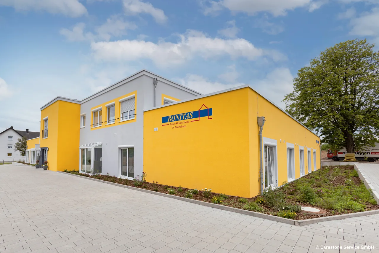 Südlich der Herforder Kernstadt und damit bereits angrenzend an die Ausläufer der Stadt Bielefeld mit ihren 334.000 Einwohnern gelegen, befindet sich der Ortsteil Elverdissen. Hier hat der Fachpflegedienst Bonitas im Juli 2020 die neugebaute Einrichtung „Unser kleines Heim in Elverdissen“ bezogen. Die Bewohner leben hier in einer Wohngemeinschaft zusammen und erhalten gleichzeitig die Sicherheit einer qualitativ hochwertigen Rundum¬versorgung durch einen ambulanten Pflegedienst. ¬Insgesamt stehen 18 exquisite Pflegeapartments zur ¬Verfügung. Im Obergeschoss befinden sich darüber hinaus zwei Mitarbeiter-Wohnungen und eine Arztpraxis.